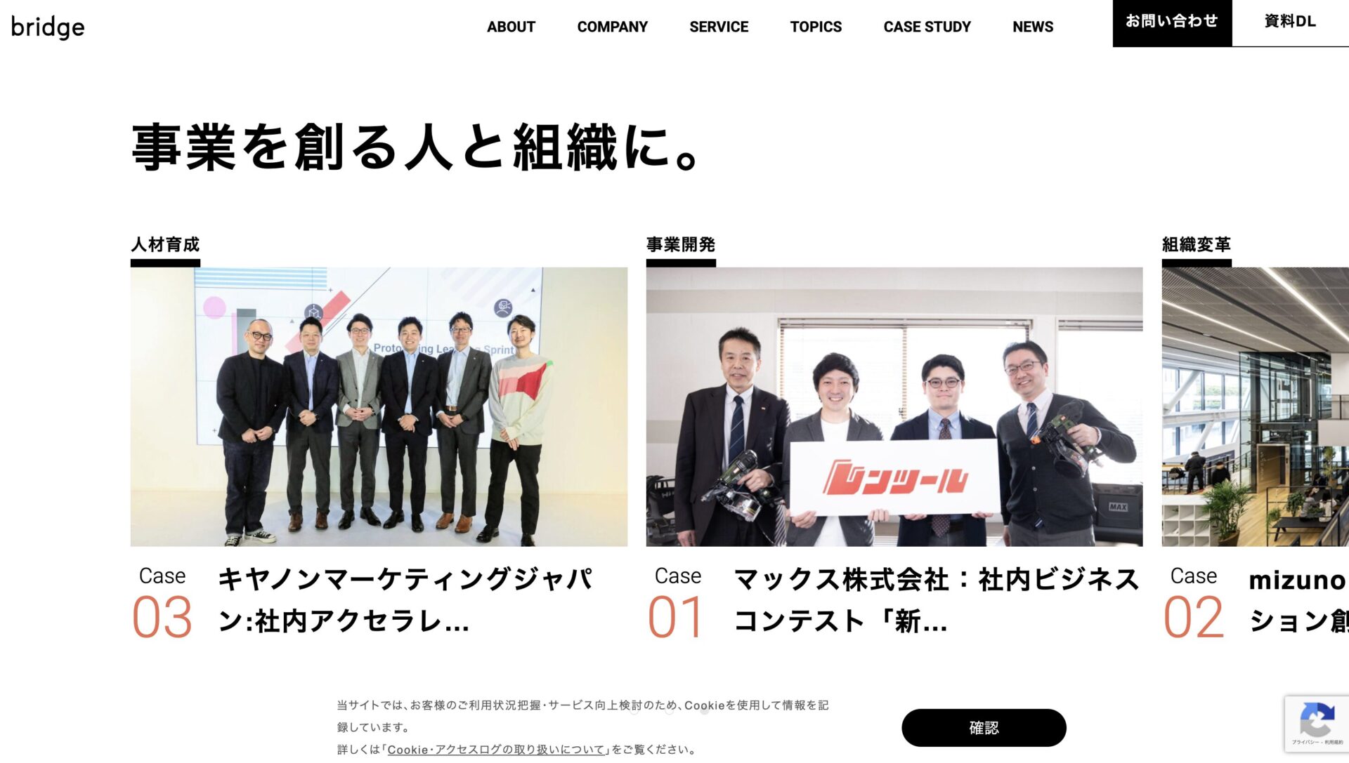 株式会社bridgeは、デザイン思考を軸に新規事業開発や組織変革を支援するデザインコンサルティングファームです。