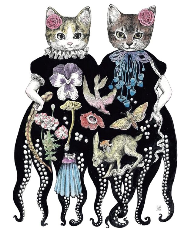 「かわいい」だけでなく、不思議さや物語性を感じさせる点が大きな魅力です。書籍装画やブランドコラボなど幅広い分野で活躍しています。