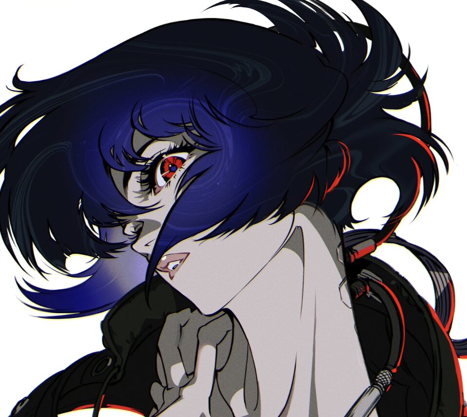 シャープな線と計算された色彩により、クールで洗練されたビジュアルを生み出しています。