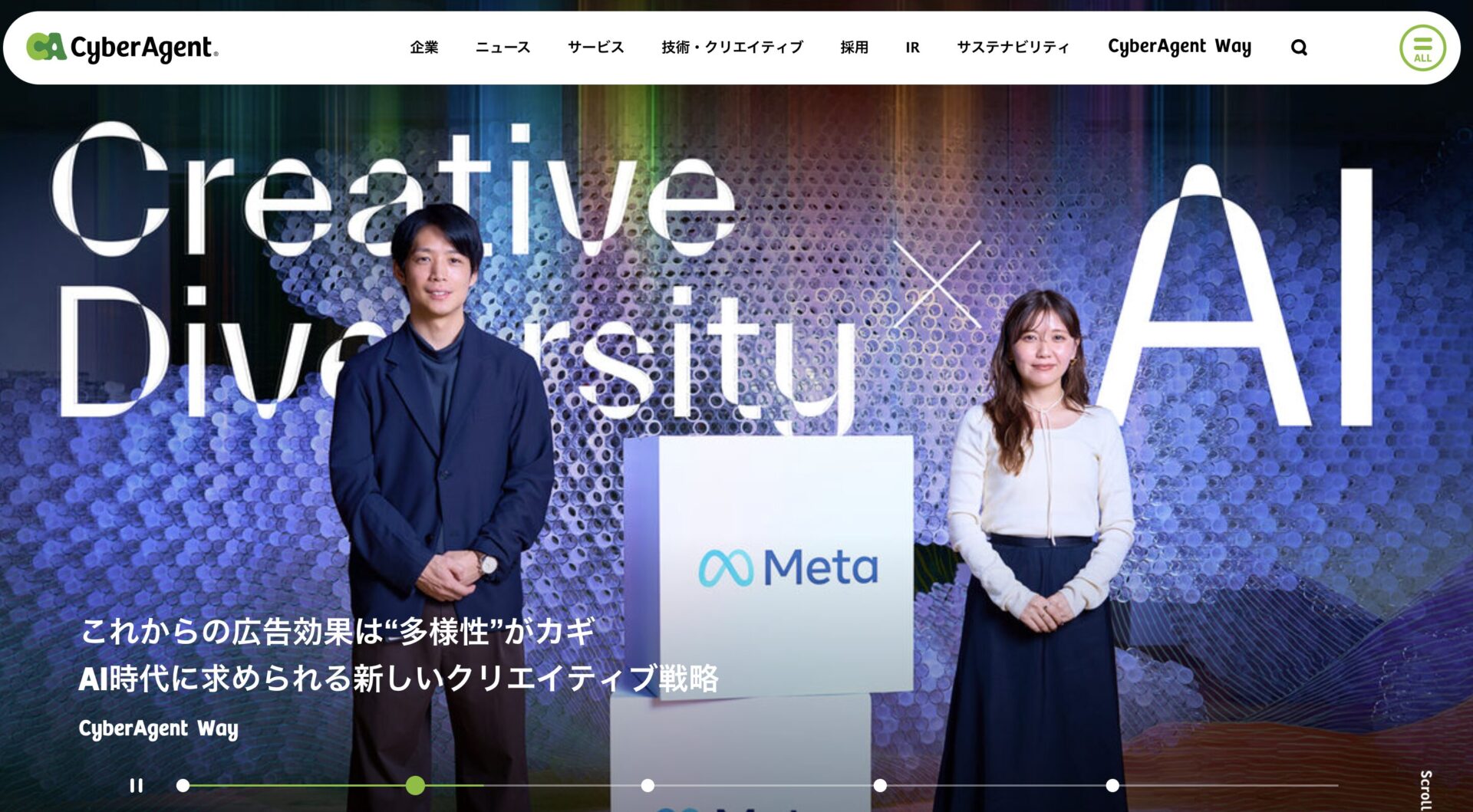 サイバーエージェントは、デジタル広告・インターネットマーケティングを主軸とする企業です。