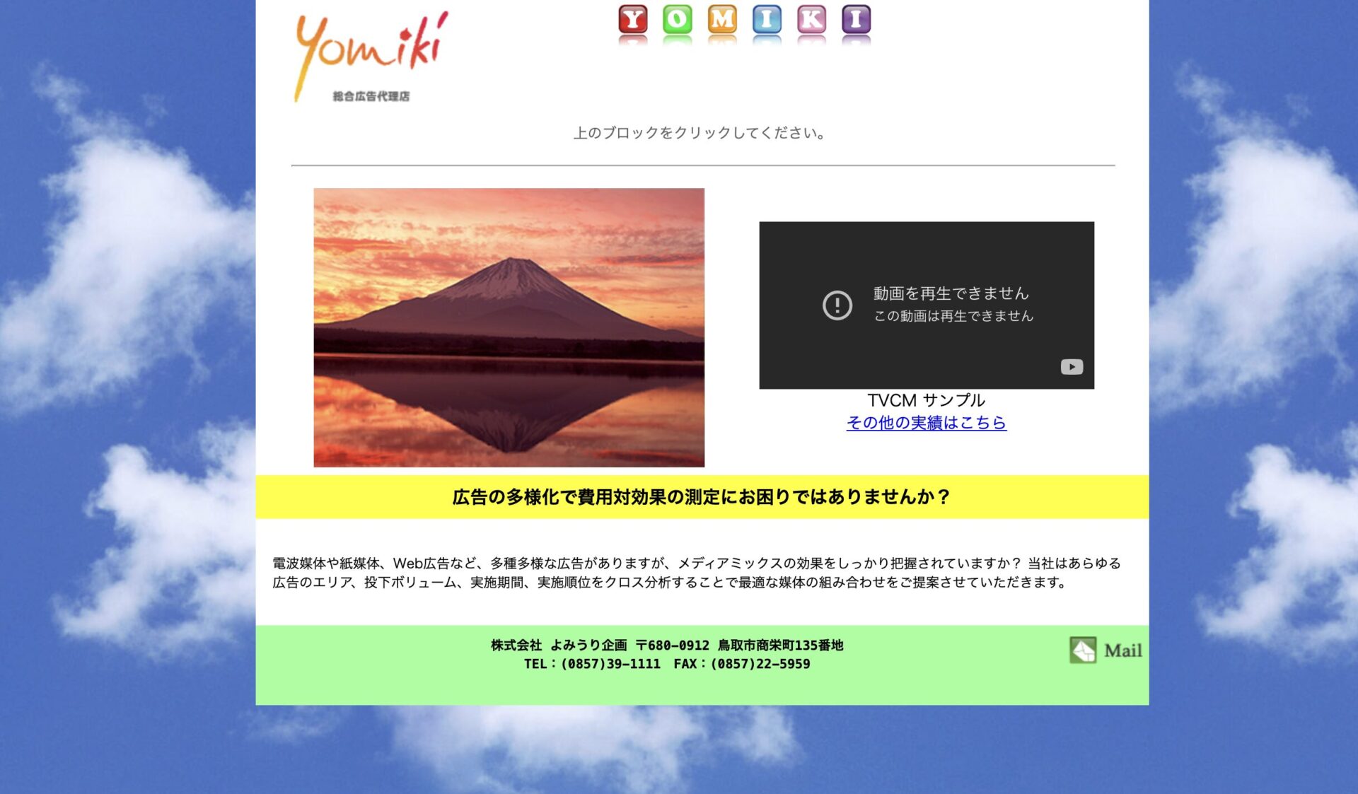 | 主な実績 | ・企業・店舗向け広告企画・制作 ・紙媒体(パンフレット・チラシ等)の制作 ・Webサイト制作・プロモーション支援 ・販売促進ツールの企画・デザイン |