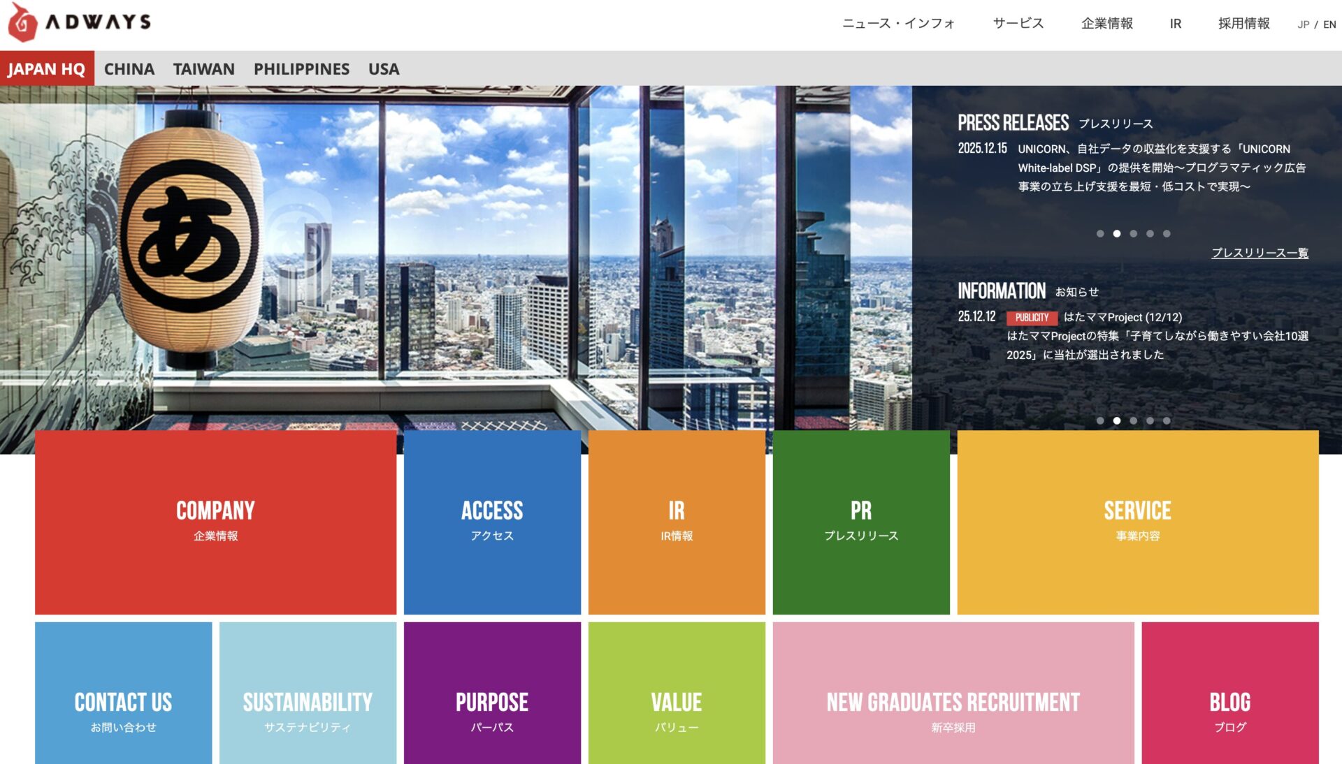 株式会社アドウェイズは、スマートフォン広告を中心に成長してきたデジタル広告代理店です。アプリ広告や成果報酬型広告に強みを持ち、広告運用から分析・改善までを一貫して支援しています。